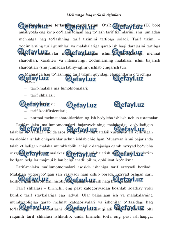ravishda mehnatga haq to‘lashning shakllari tizimi va to‘lov hajmlarini ularning