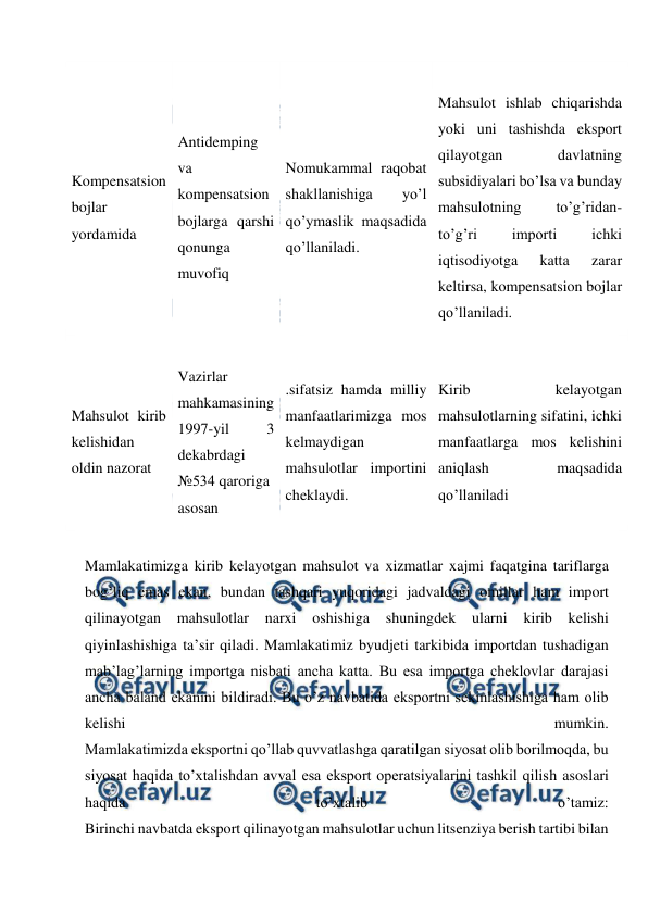 mamlakatlarning ulushi oshib bormoqda. Bizga malumki tashqi savdo o'sishi bilan