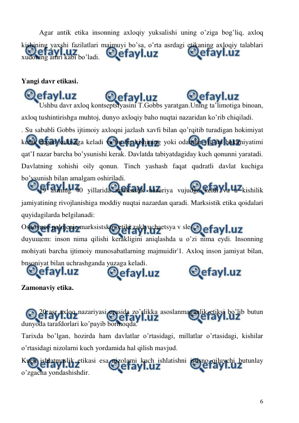 etikaning shakllanishida hal qiluvchi rol o’ynadi. Antik etikada ikkita asosiy